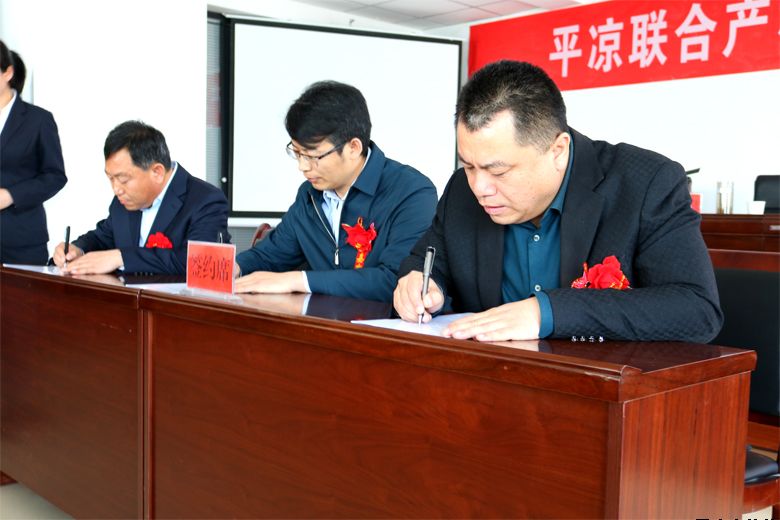 儀式現(xiàn)場,平?jīng)鍪谐青l(xiāng)建設(shè)投資有限責(zé)任公司黨委副書記、總經(jīng)理唐常寧,甘肅省產(chǎn)權(quán)交易所股份有限公司總經(jīng)理趙永濤,平?jīng)鍪谐青l(xiāng)建設(shè)投資有限責(zé)任公司副總經(jīng)理、平?jīng)雎?lián)合產(chǎn)權(quán)服務(wù)有限公司總經(jīng)理柳振源共同簽署《產(chǎn)權(quán)交易委托框架協(xié)議》。