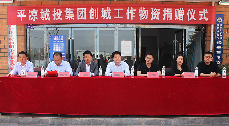儀式上,平?jīng)龀峭都瘓F(tuán)向保豐村和陽小區(qū)和雙橋社捐贈創(chuàng)城物資;保豐村黨支部書記徐明祥、柳湖鎮(zhèn)黨委副書記陶彥沛代表村、鎮(zhèn)分別作了講話,表示將合理利用捐贈物資,把創(chuàng)建全國文明城市工作作為當(dāng)前最重要的任務(wù)來抓,精心部署、周密安排,全力以赴做好文明城市創(chuàng)建各項工作。同時在轄區(qū)營造“人人關(guān)心創(chuàng)城、人人參與創(chuàng)城、爭做文明市民”的濃厚氛圍,提升轄區(qū)居民對創(chuàng)城工作的滿意度和參與率。